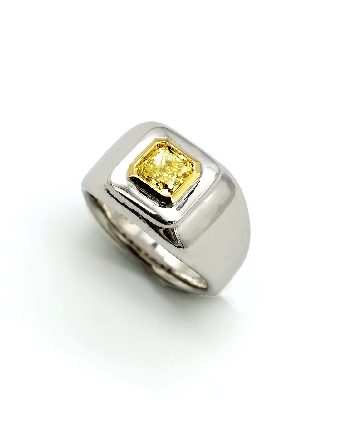 ダイヤモンド:スクエアカット、Fancy Intense Yellow、SI-1