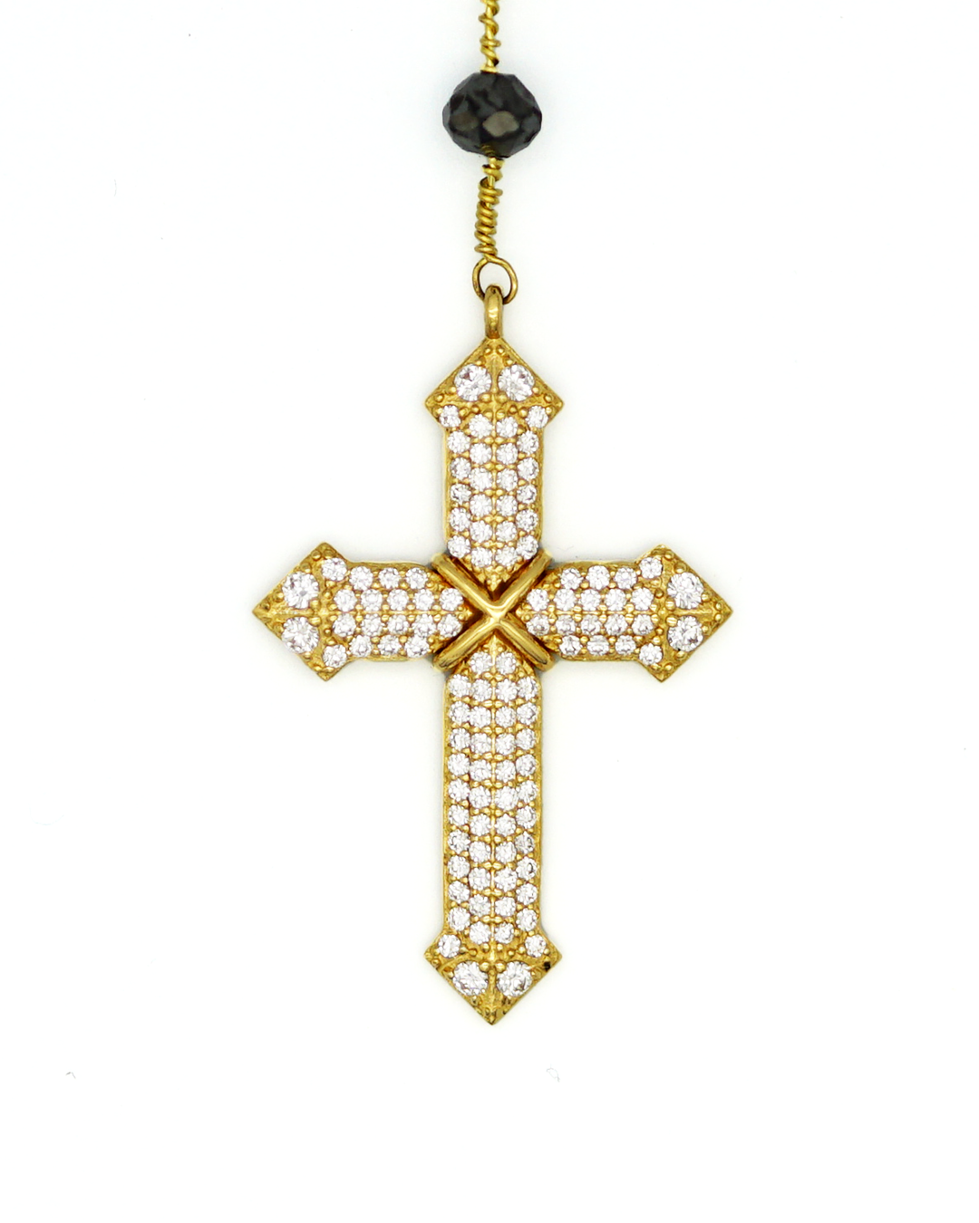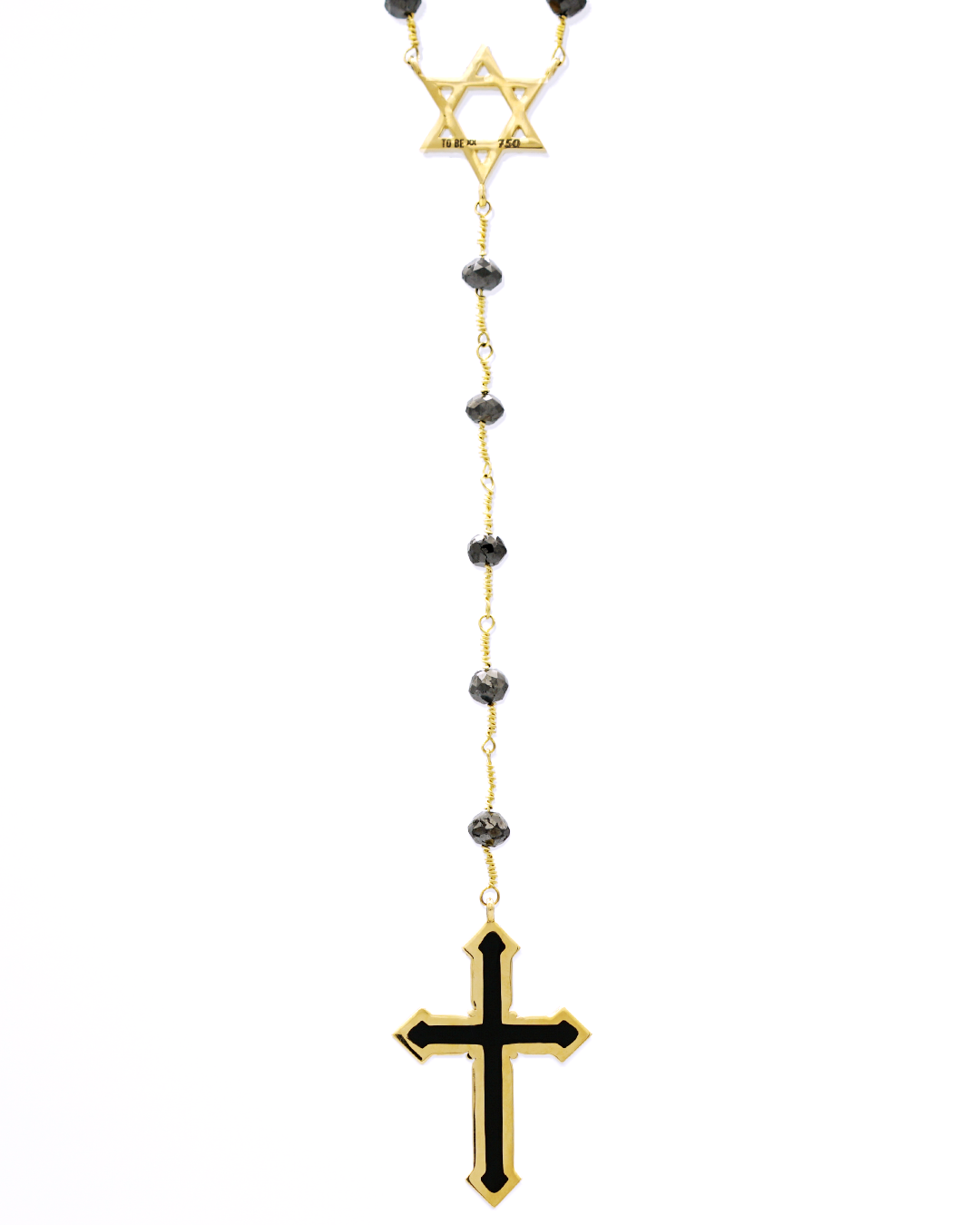 K18 ブラックダイヤモンドの手作りロザリオのネックレスです。